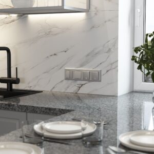 Выключатель двухклавишный проходной с подсветкой Werkel, серебряный матовый