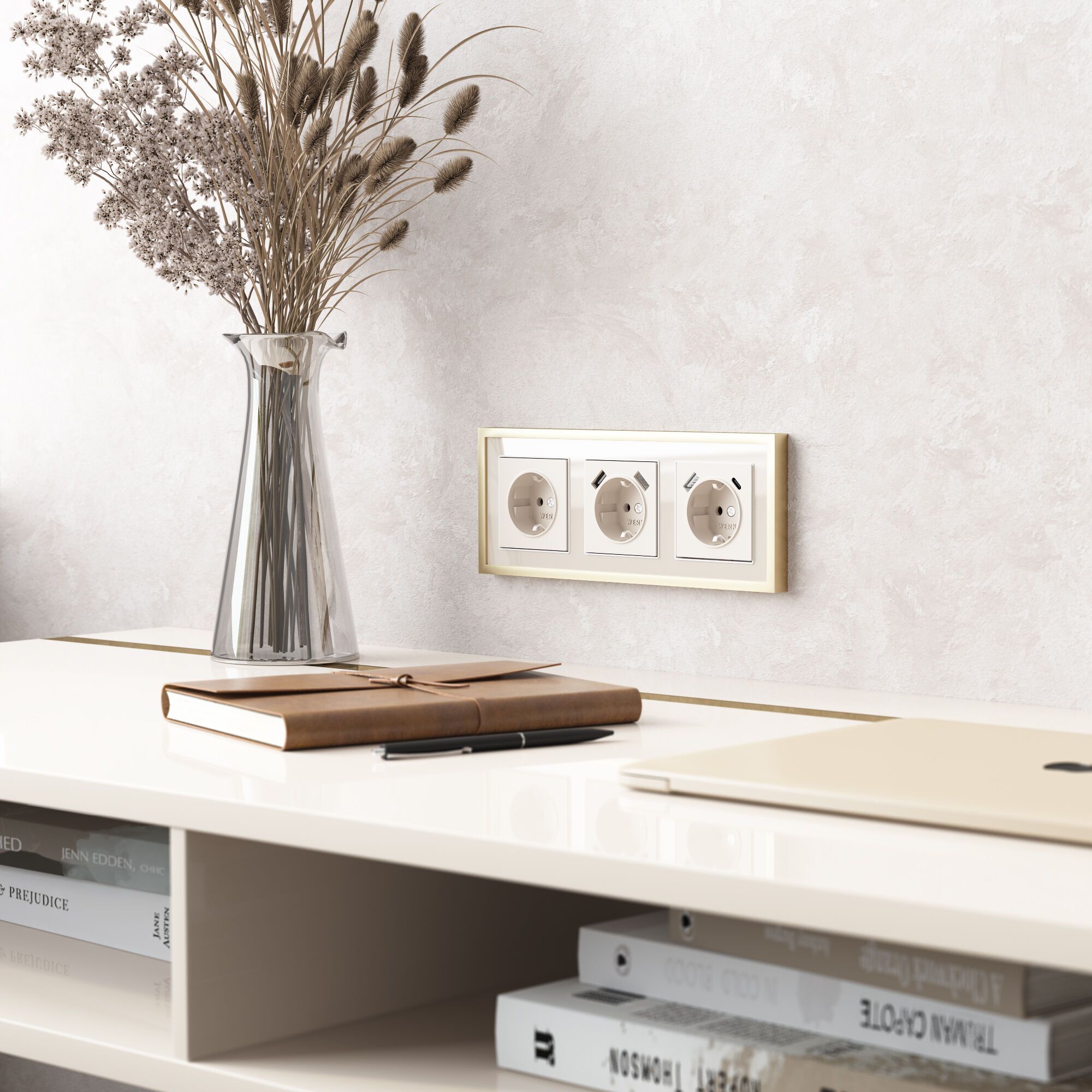 Рамка на 3 поста Werkel Baguette, айвори/латунь