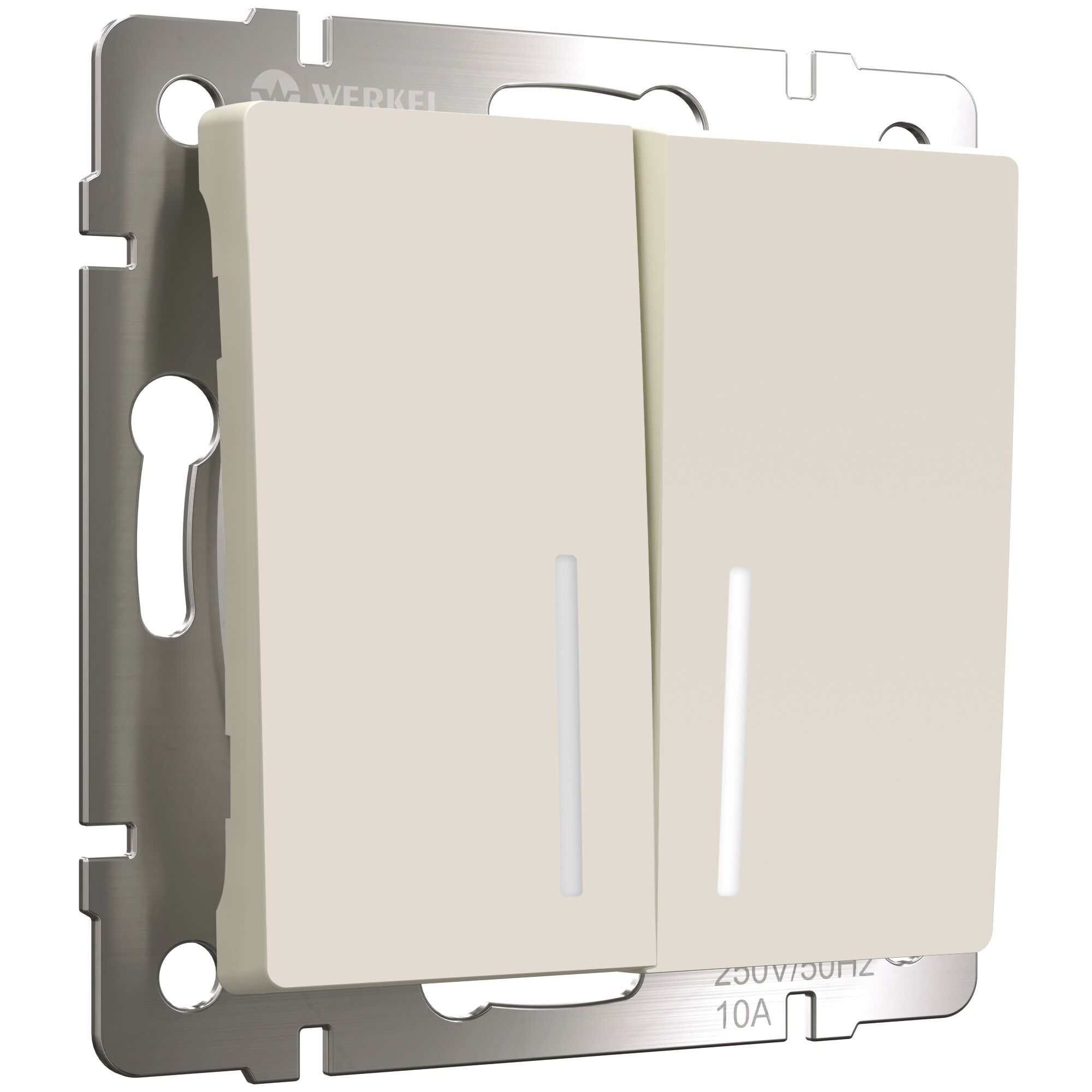Выключатель двухклавишный с подсветкой Werkel, айвори матовый