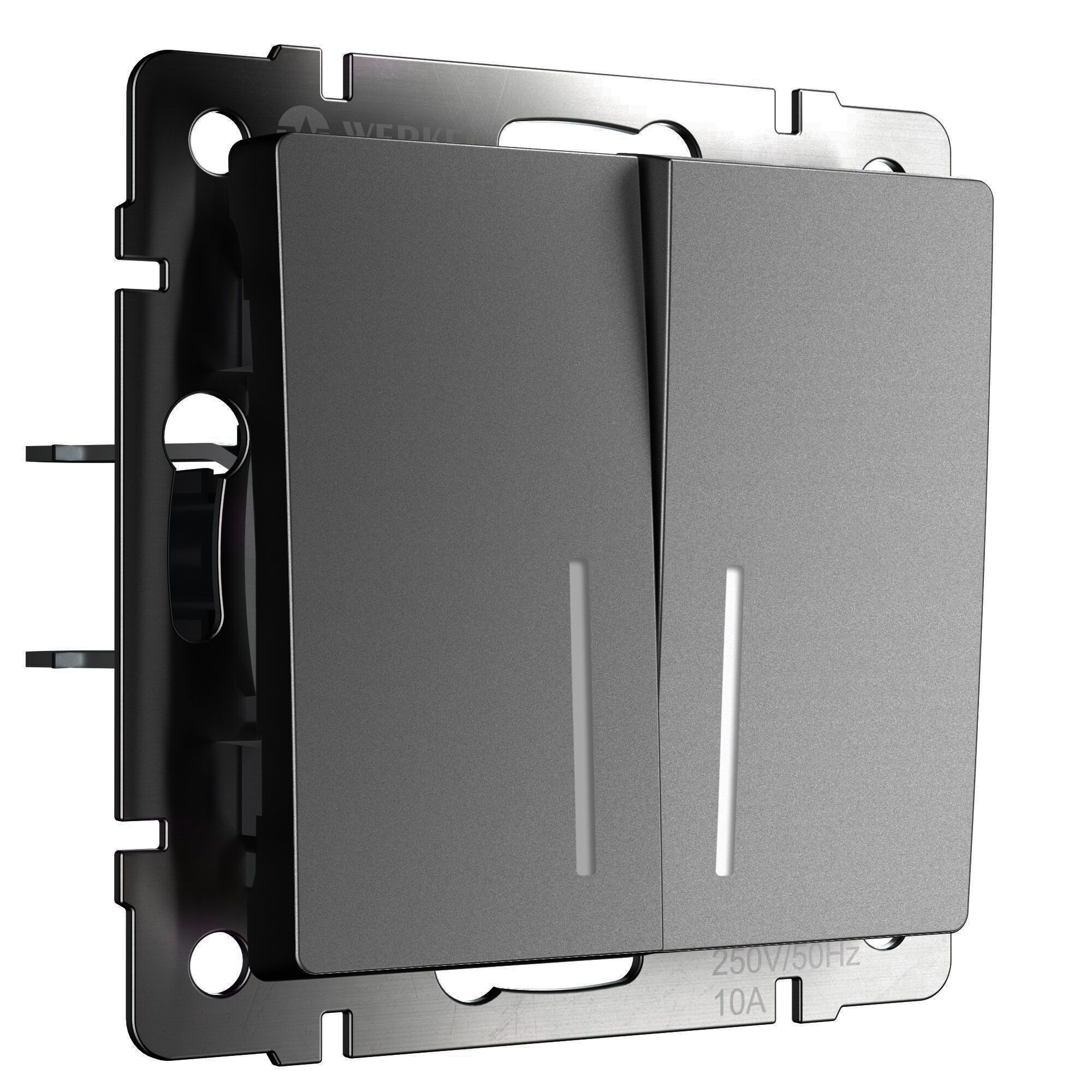 Выключатель двухклавишный с подсветкой Werkel, графит матовый