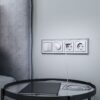 Выключатель двухклавишный с подсветкой Werkel, серебряный