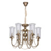 Арматура светильника выполнена из сплава железа и гальванизирована в цвет латуни. Округлые элементы на центральной оси и под розетками выполнены по технологии токарной обработки. Плафоны выполнены из прозрачного стекла.