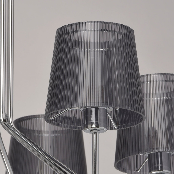 Основание: металл, гальванизировано в цвет хрома. Абажуры: акриловые абажуры черного цвета отлиты в сложную гофрированную форму.