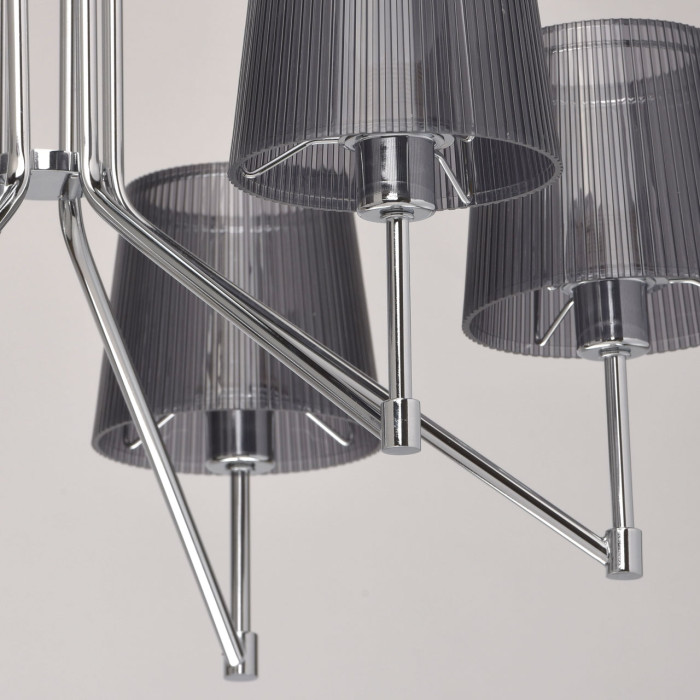 Современный динамичный дизайн Плафоны дымчато-серого цвета создают мягкое рассеянное освещение. Близкое расположение к потолку дает возможность размещать люстру в помещении со стандартными потолками Плафоны из акрила можно протирать влажной тряпкой 2 варианта по количеству плафонов дают возможность подобрать люстру для помещений разной величины.