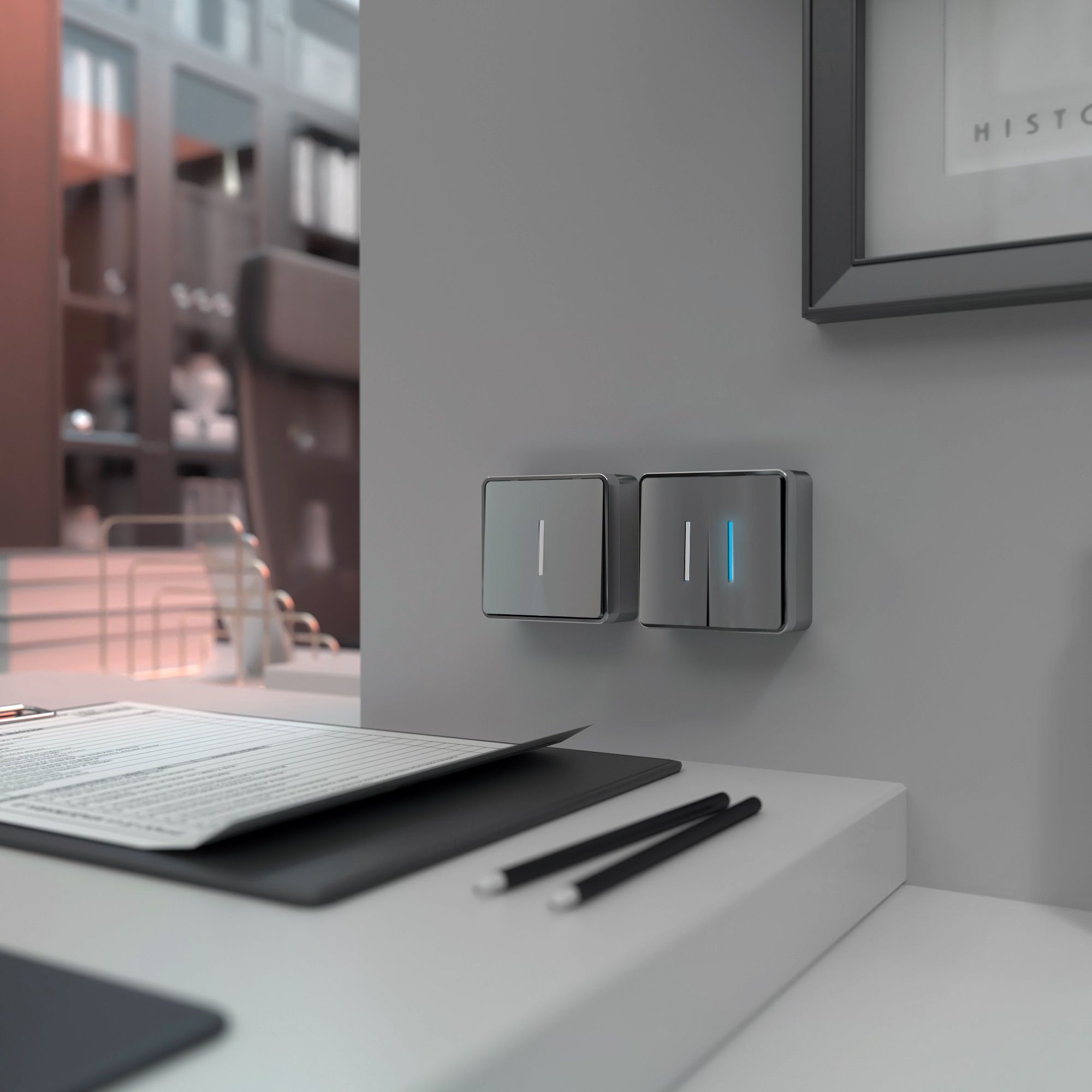 Выключатель двухклавишный с подсветкой Gallant серебряный