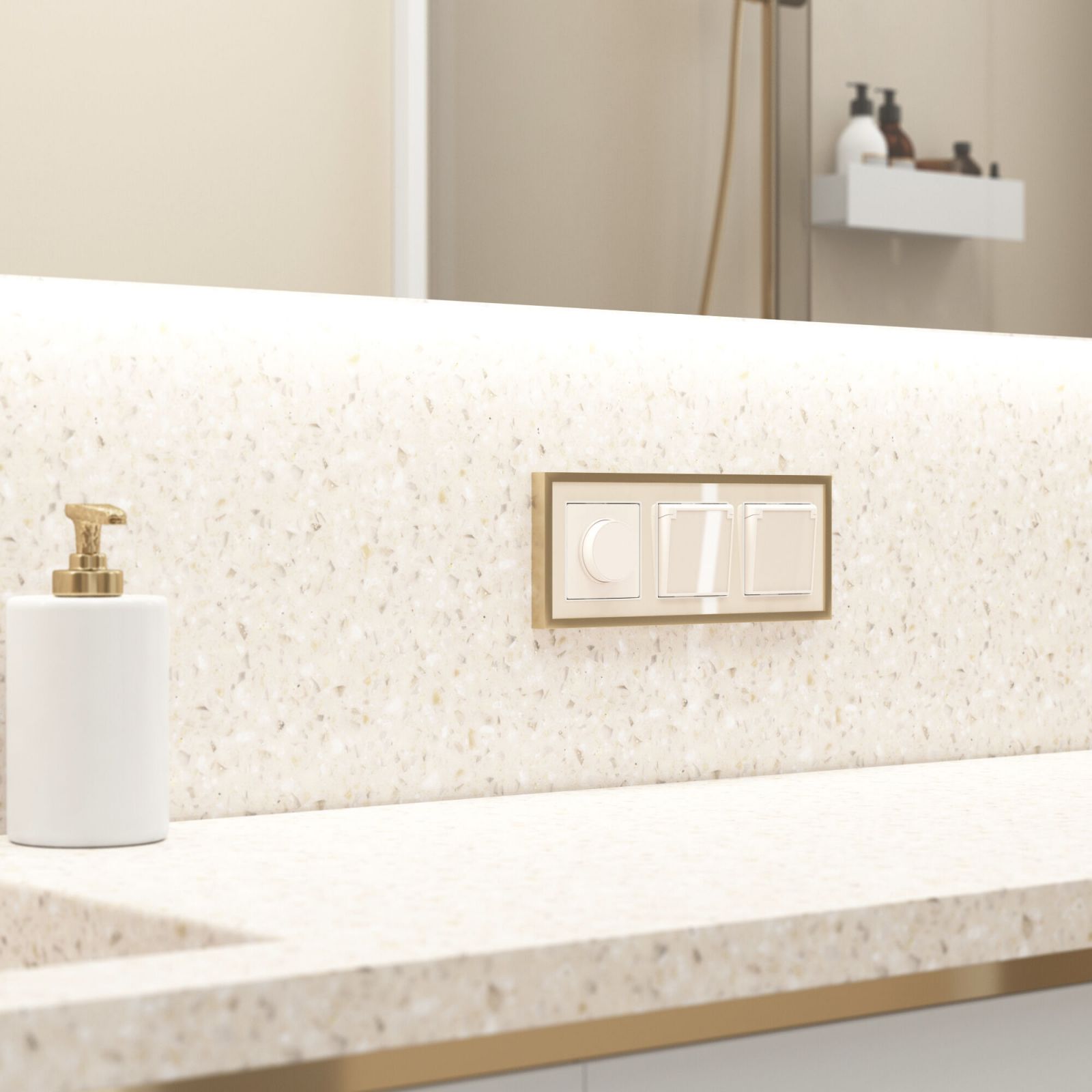 Розетка влагозащ. с зазем. с защит. крышкой и шторками (айвори акрил)