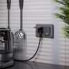 Розетка влагозащ. с зазем. с защит. крышкой и шторками N (графит рифленый)