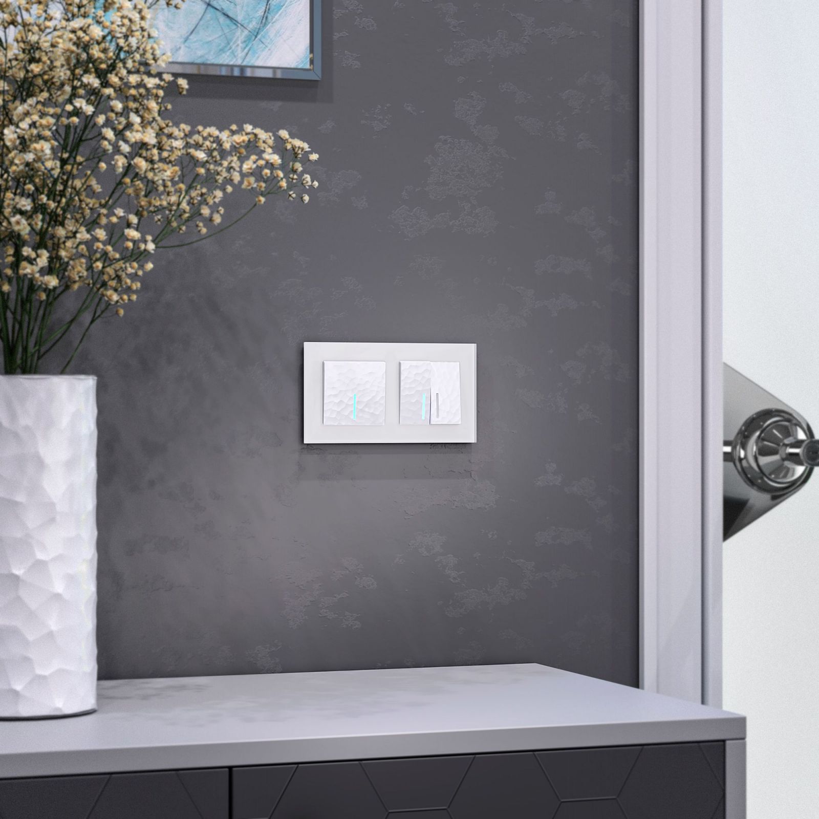 Выключатель одноклавишный проходной с подсветкой (hammer белый)