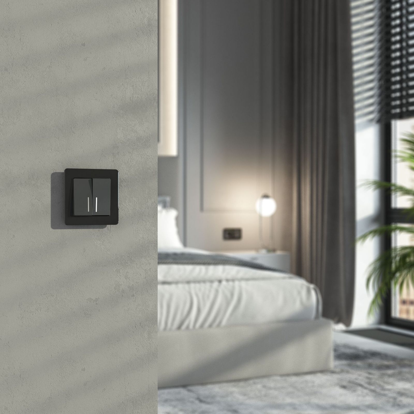 Выключатель двухклавишный проходной с подсветкой (графит акрил)